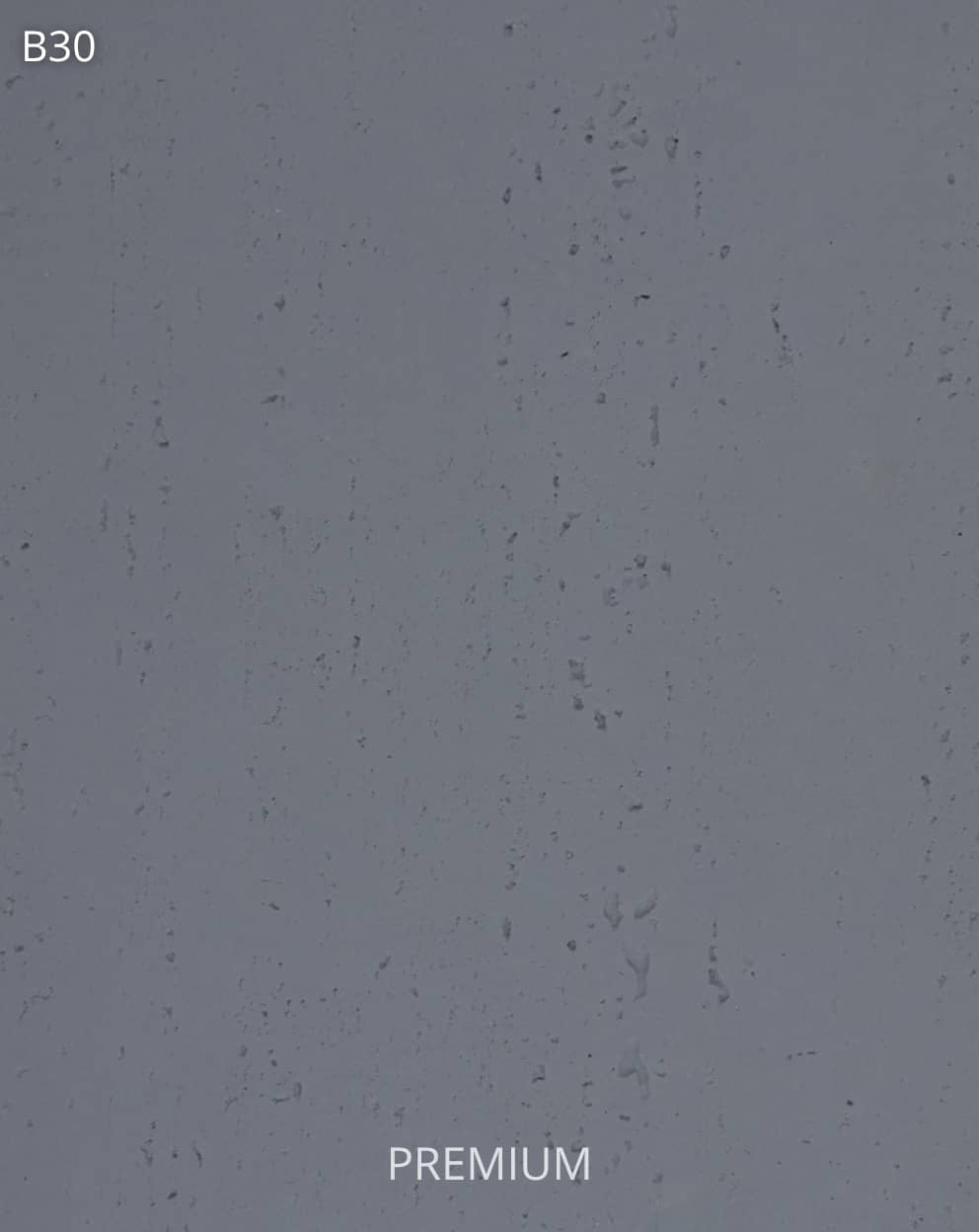 B30 Premium to najbardziej zdecydowany odcień w kolekcji: bardzo ciemny, stalowo-grafitowy beton o surowej, wyraźnej fakturze. Mikrospękania, wżery i nieregularności tworzą efekt monolitu zdjętego wprost z konstrukcji – bez wygładzania, bez kompromisu.