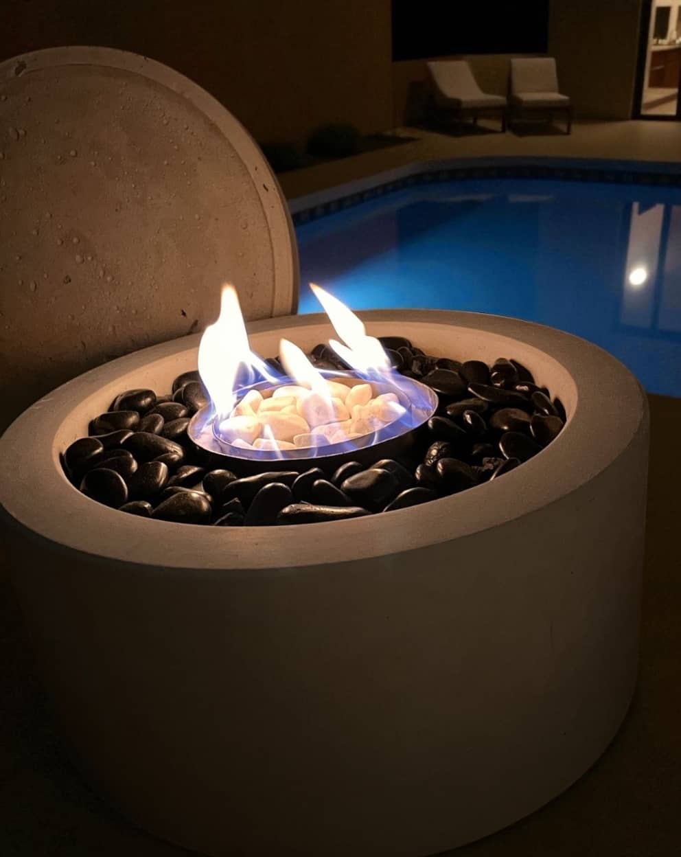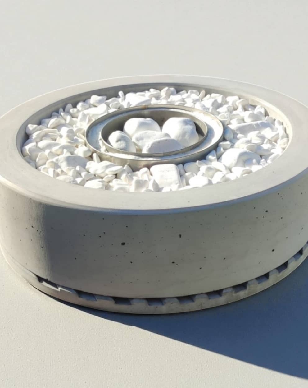 Monumentalna bryła betonu architektonicznego i naturalny płomień na bioetanol. Duży biokominek betonowy wolnostojący to centralny punkt aranżacji – bez komina, dymu i popiołu.
