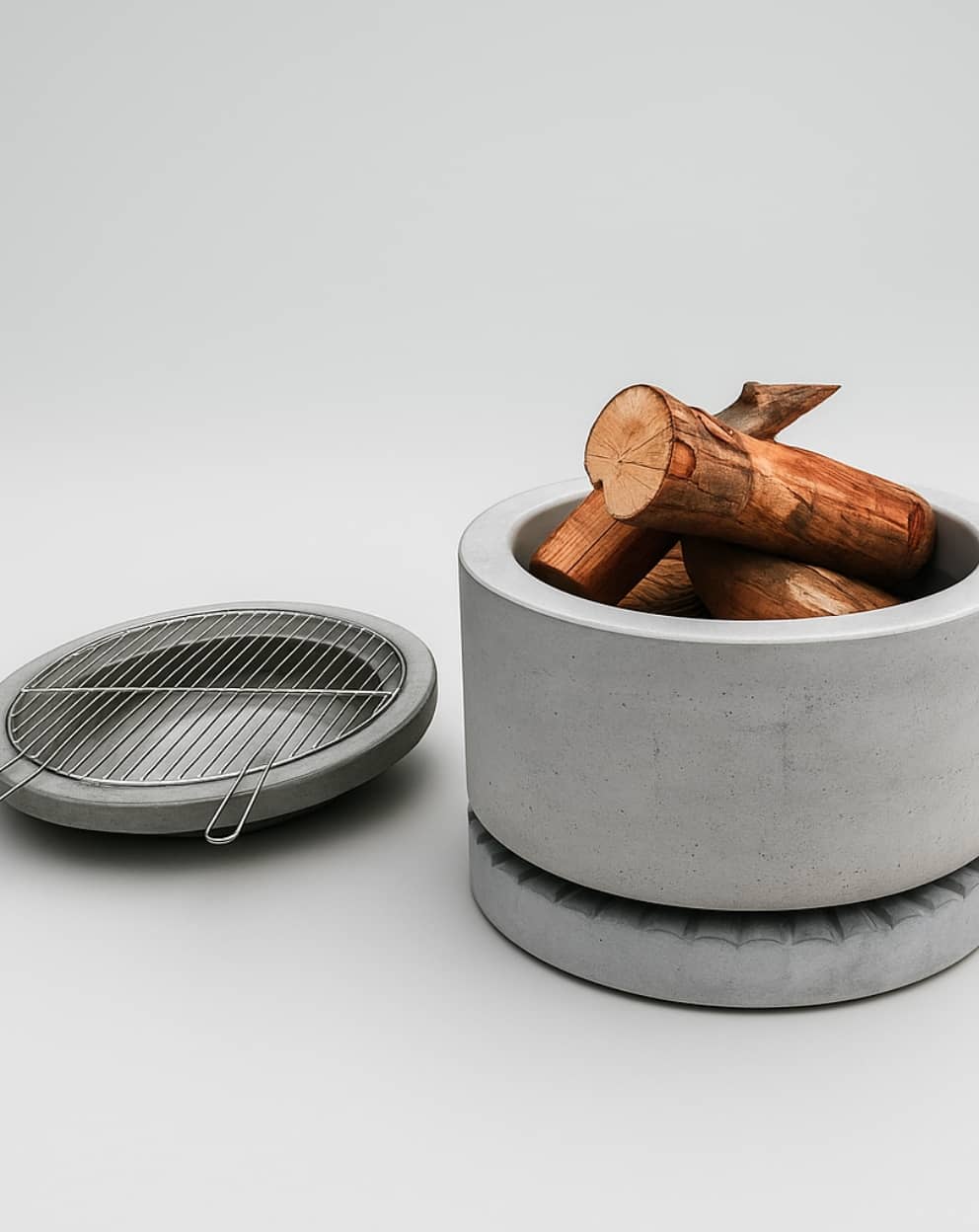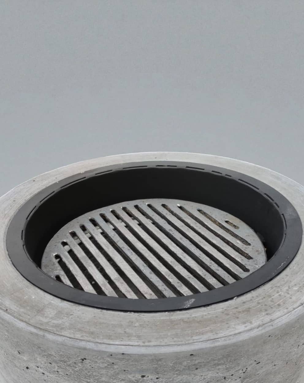 - Materiał: beton architektoniczny, wkład metalowy + izolacja z włókna ceramicznego, ruszt żeliwny